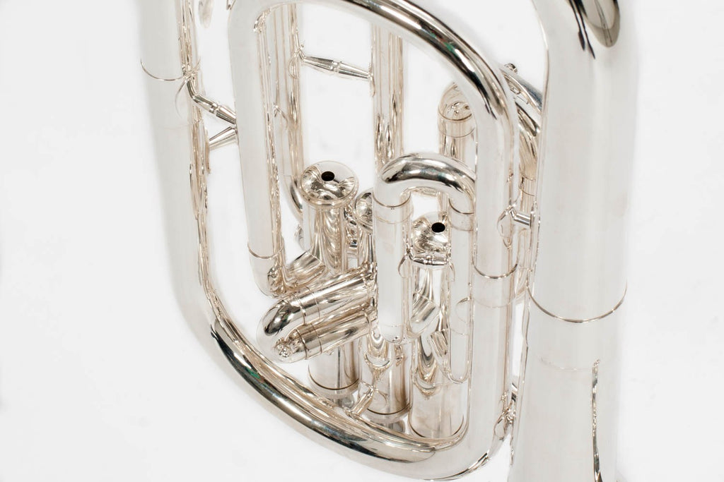 解説2 | 調性:Eb 仕上げ:銀メッキ仕上げ ボア:11.7mm ベル:203.6mm イエローブラス製 リードパイプ:ゴールドブラス製 ケース:セミハードケース |