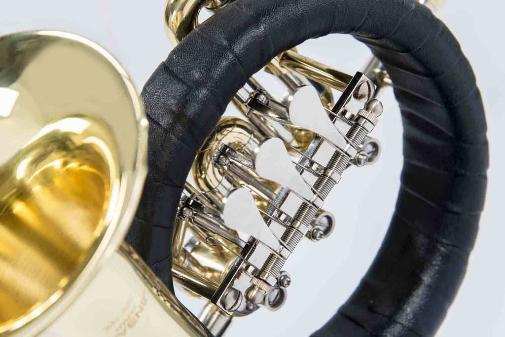 解説2 | 調性:Bb 仕上げ:ラッカー仕上げ ボア:11.66mm ベル:126mm イエローブラス製 ケース:ハードケース 3ロータリー、フリューゲルホルンシャンク |