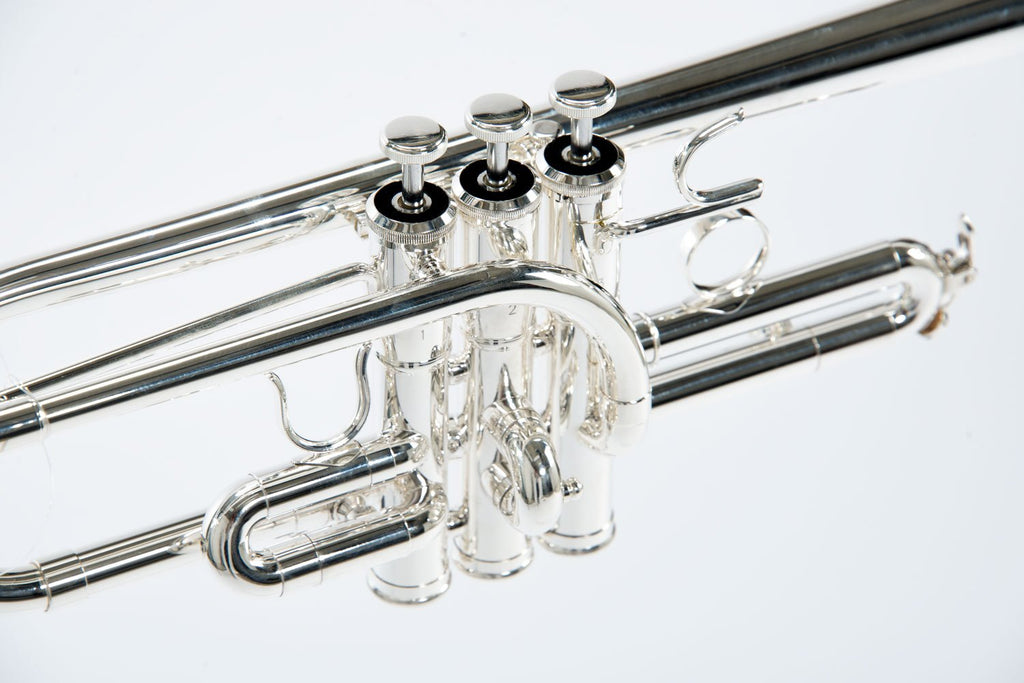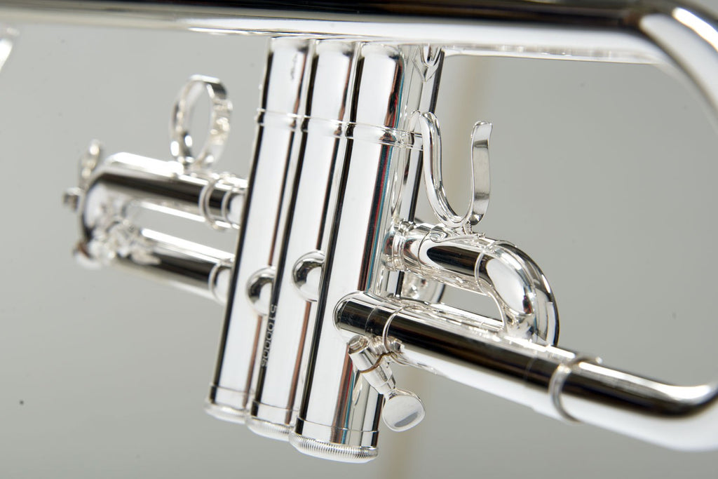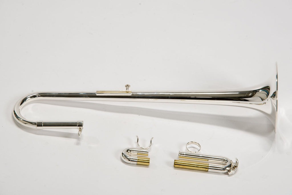 解説2 | 調性:E♭/D 仕上げ:銀メッキ仕上げ ケース:セミハードケース ボア:11.2mm ベル:131mm イエローブラス チューニングパイプ:イエローブラス リードパイプ:イエローブラス ピストン:ステンレス |