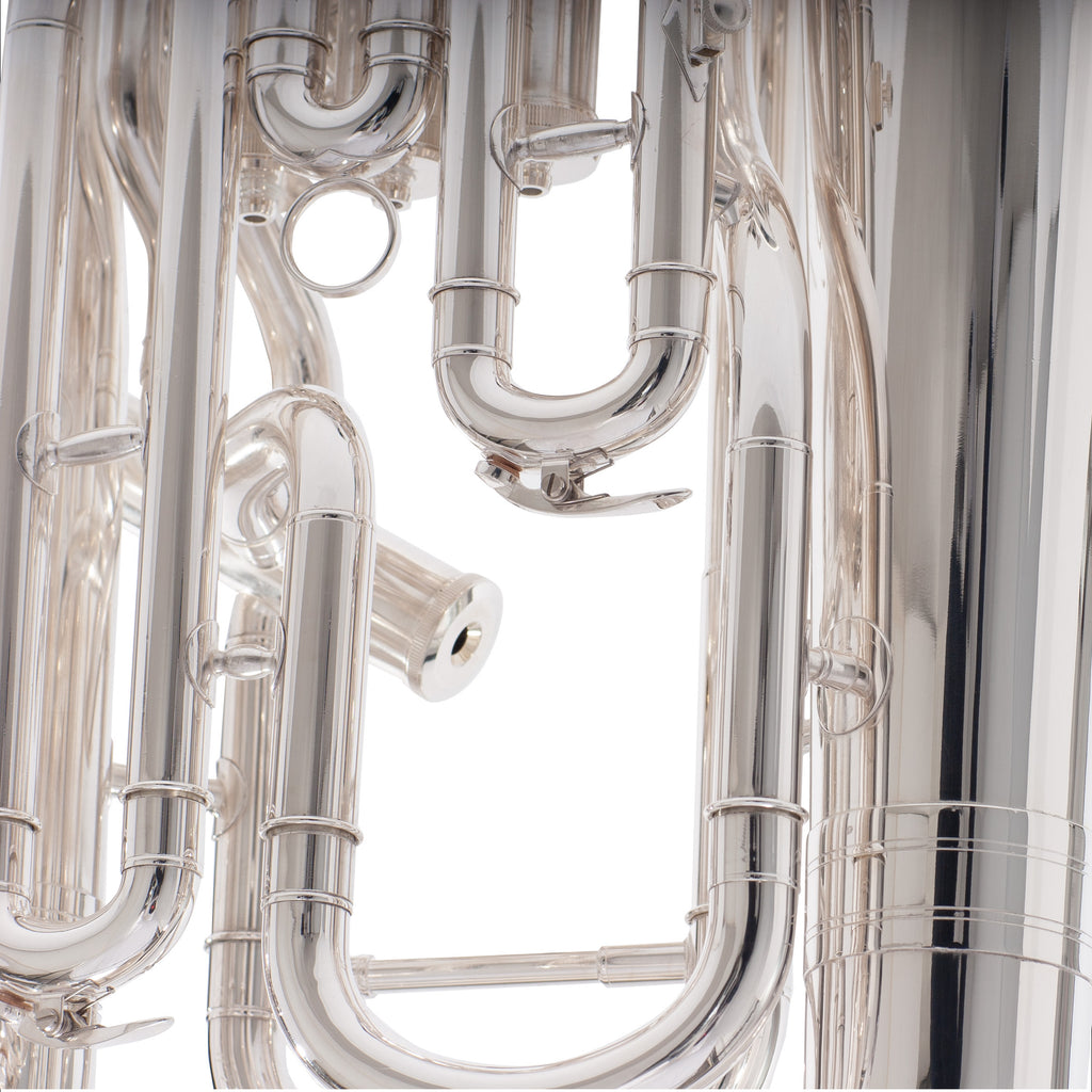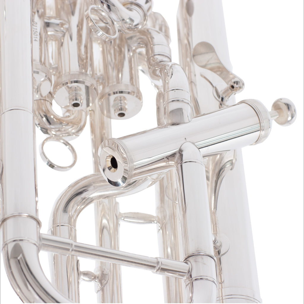| 解説 | 価格を抑えながらも、コンペンセイティング・システム(Compensating System)を採用しており、従来の4ピストンよりも低音域のスムーズで正確な音階の手助けになります。 JINBAOの1150Sによりコンペンセイティング・システムは贅沢な装備ではなく、これからは必須の装備となることでしょう。 これから楽器を始める方はもちろん、通常の4本ピストンからの買い替えもオススメです。 オプションで銀メッキが用意されています。 |