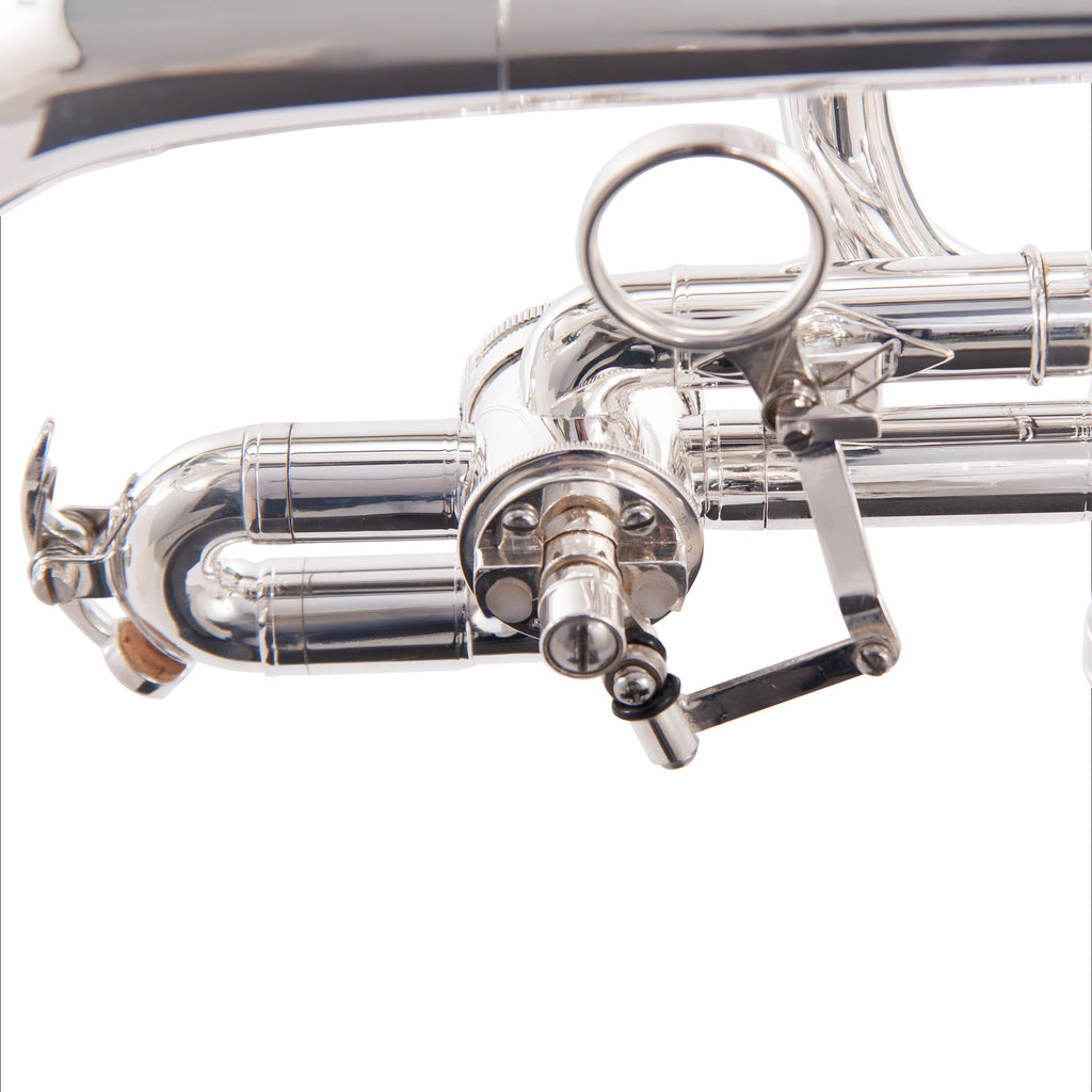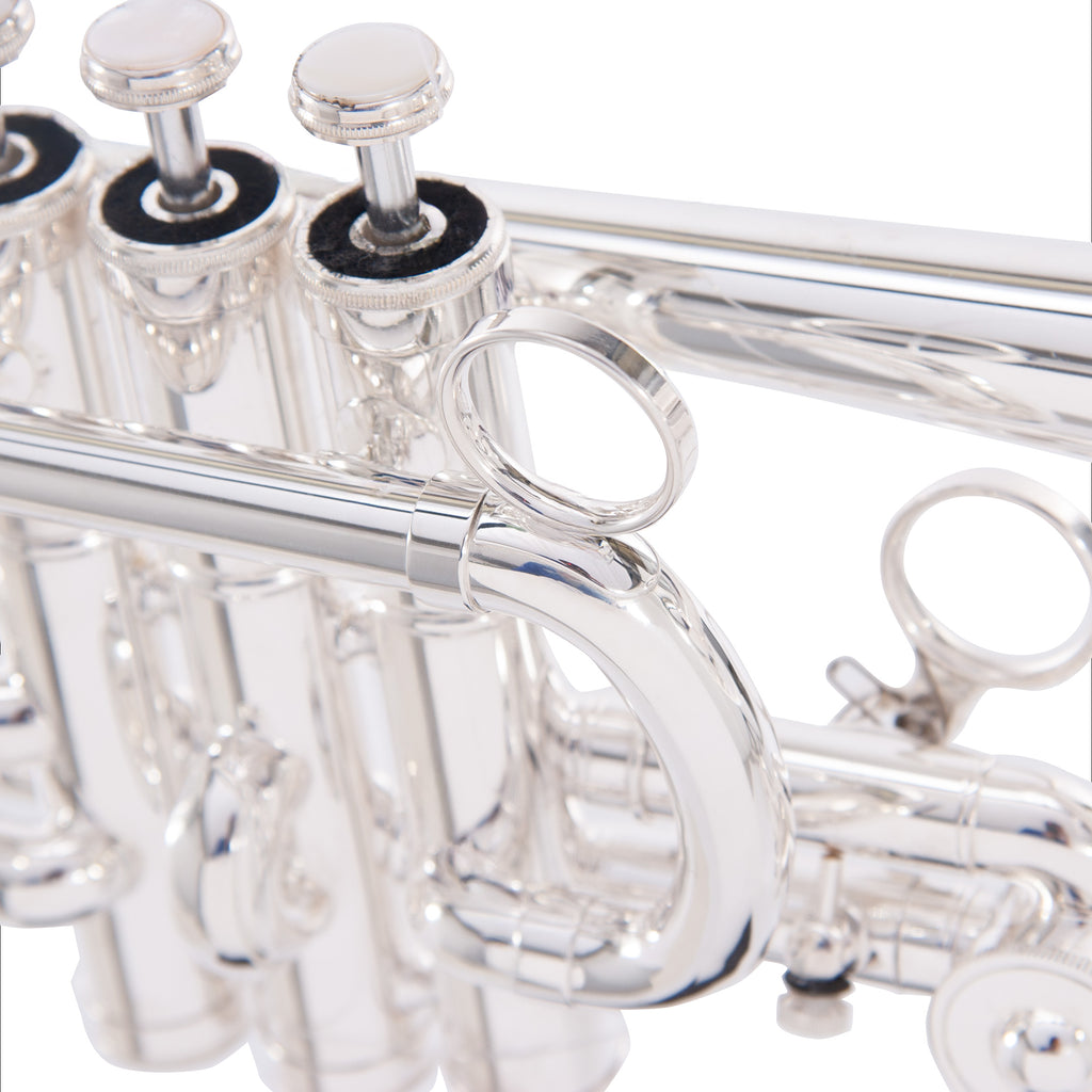 | 解説 | 明るい目で軽い吹奏感が特徴の3本ピストンの楽器です。 第3番ピストンにロータリーの付いた抜き差しを持ち、トリガーを引くと、1音分(全音)下げることができ、低音域を拡張することができます。 マウスパイプはトランペットシャンクのB♭と日本向けにJINBAO JAPANが独自に設計したコルネットシャンクのB♭とAの3本が付属します。 ピッコロトランペットは演奏の易しい楽器ではありませんが、独特なハリのある明るい音色はピッコロトランペットからしか生まれません。 |