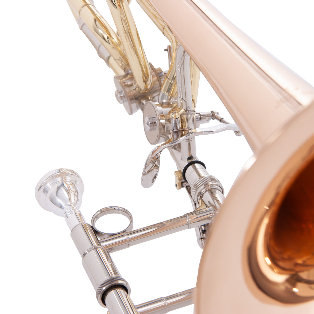 | 解説 | オープンラップですが巻きが少しきつく、適度な抵抗感があり低音域の発音を助けます。 赤ベルは柔軟性のある豊で力強い音色をもたらします。洋白製のハンドスライドはクリアな発音を助けます。 |